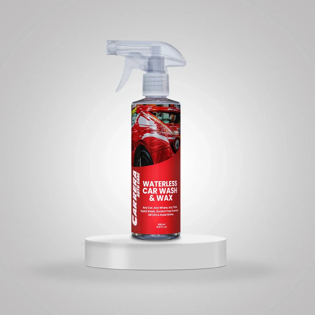 Carrera Waterless Wash and Wax cleans and protects your vehicle without traditional washing. Its advanced formula lifts dirt and grime gently, ensuring no scratches, while the high-quality wax adds a protective shine and shields against UV rays, road salts, and pollutants, keeping your paint pristine longer.