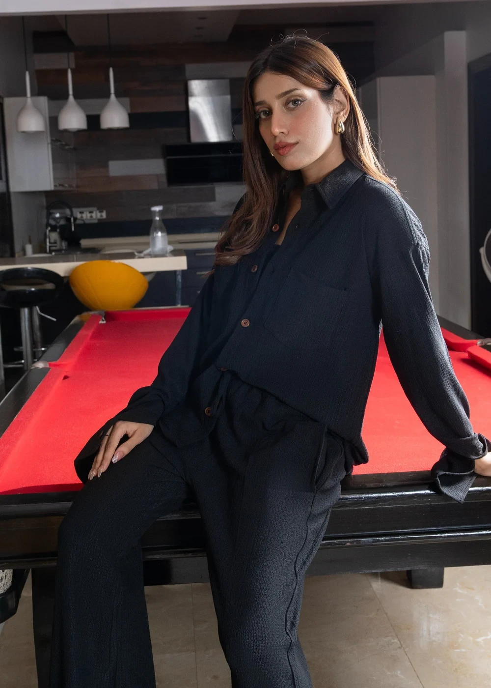 30% Cotton 70% Viscose Matching Wide Leg Pajamas Shoulder Down Shirt Full Sleeves Chic & Stylish Casual Wear Premium Collection